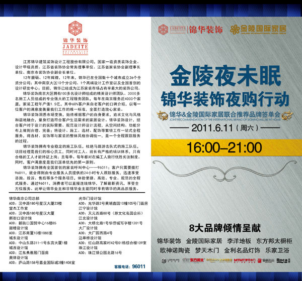 發(fā)布時間:2011-06-01 15:25:00 閱讀次數(shù):8341次 金陵夜未眠錦華裝飾夜購行動