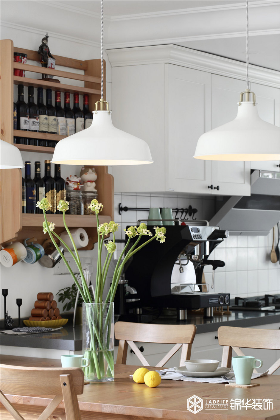 ▲吧臺將餐廳區(qū)域與廚房區(qū)域隔而不斷,讓空間呈現(xiàn)出不同的層次感,沒有過多阻擋,廚房的光線更加明亮!