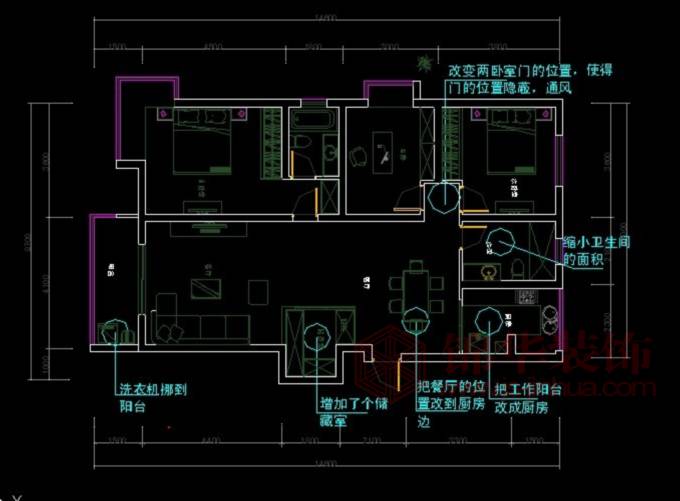 戶型缺點:但是餐廳和廚房的關(guān)系過于松散,北面的工作陽臺有點浪費,儲藏空間偏小,衛(wèi)生間過大。